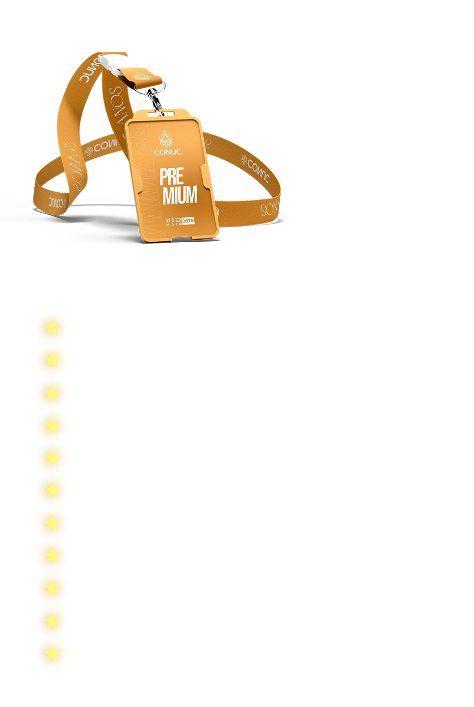 Dias 21 e 22 de maio em comemoração aos 5 anos do CONUC, preparamos uma edição histórica e temática, inspirada no Oscar, com direito a tapete vermelho ✨Um evento criado para transformar sua carreira com conteúdo exclusivo , atualizado e estratégico, conectando você às tendências que realmente fazem a diferença.